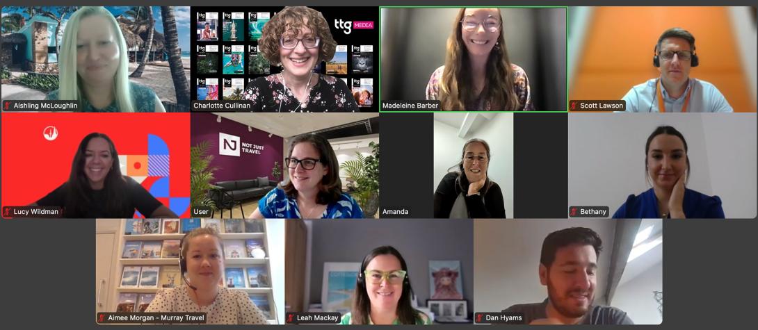 Clockwise from top left: Iberostar’s Hotels & Resorts’ Aishling McLoughlin; TTG’s Charlotte Cullinan and Madeleine Barber; easyJet holidays’ Scott Lawson; PR World Travel’s Bethany McNally; Travel Counsellors’ Dan Hyams and Leah Mackay; Murray Travel’s Aimee Morgan; Intrepid’s Lucy Wildman; Not Just Travel’s Lisette Julio-Quinn; Millington Travel’s Amanda Handy